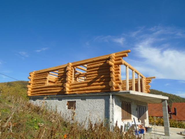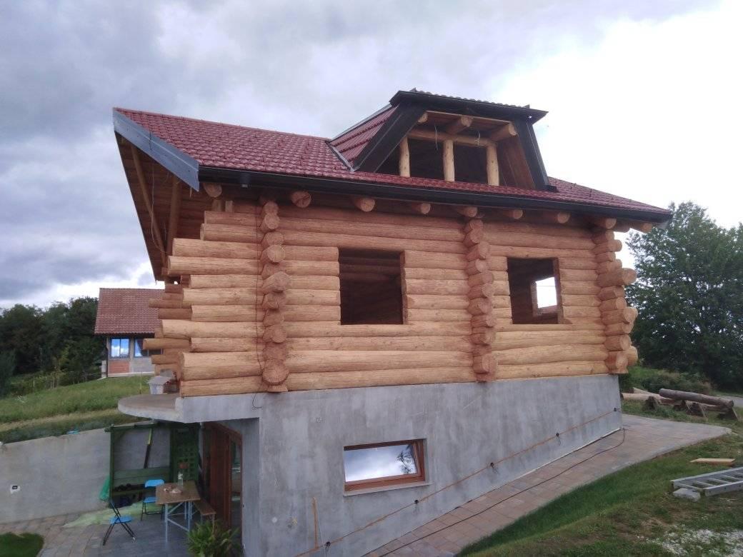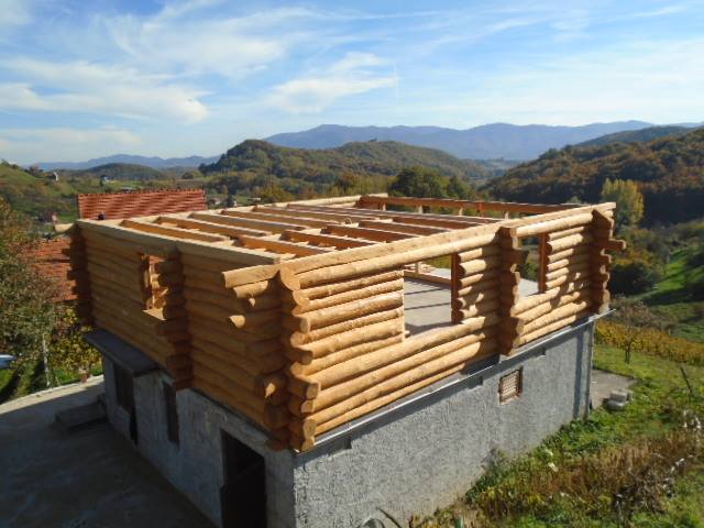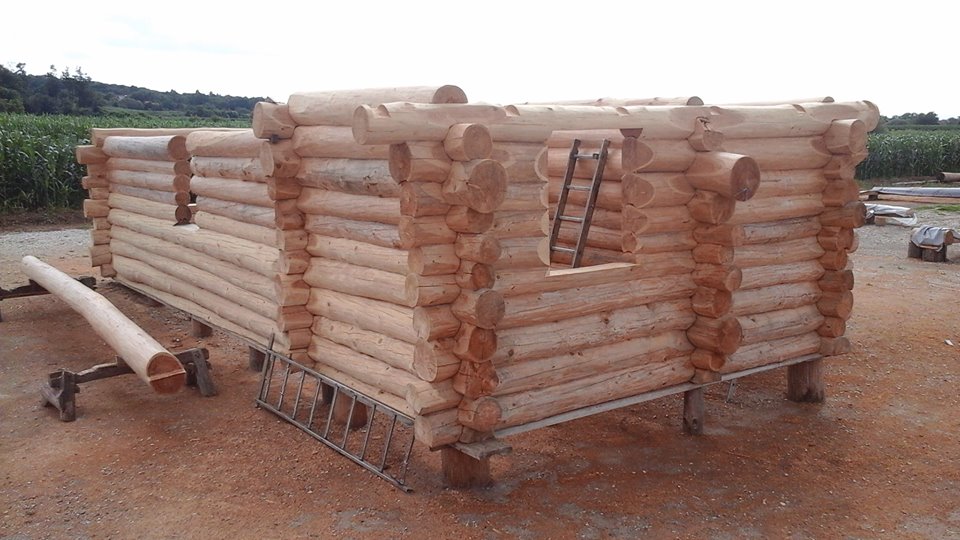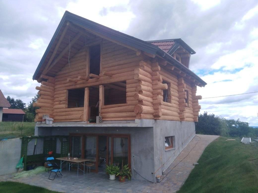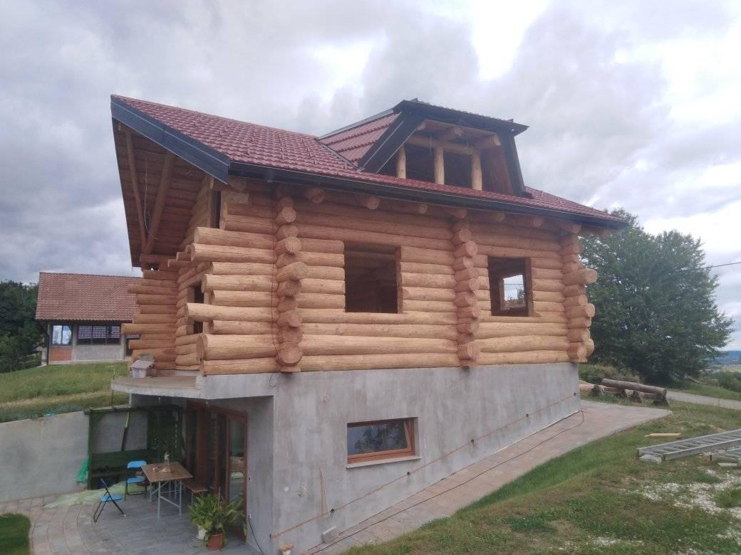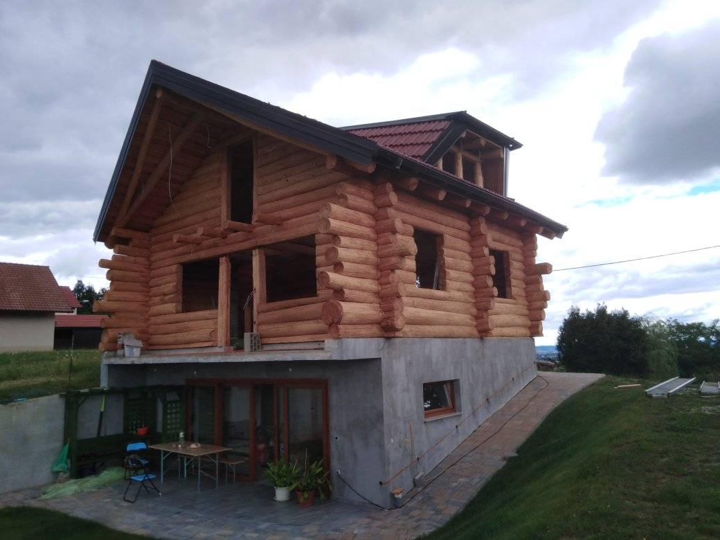 Gradnja obiteljske kuće od ručno obrađenih trupaca ariša na području Kneginca Gornjeg.