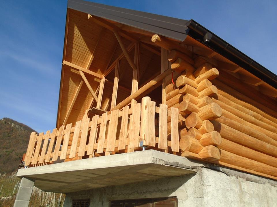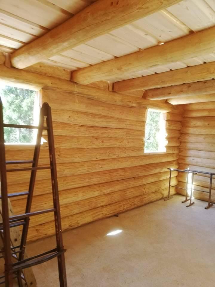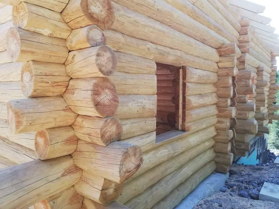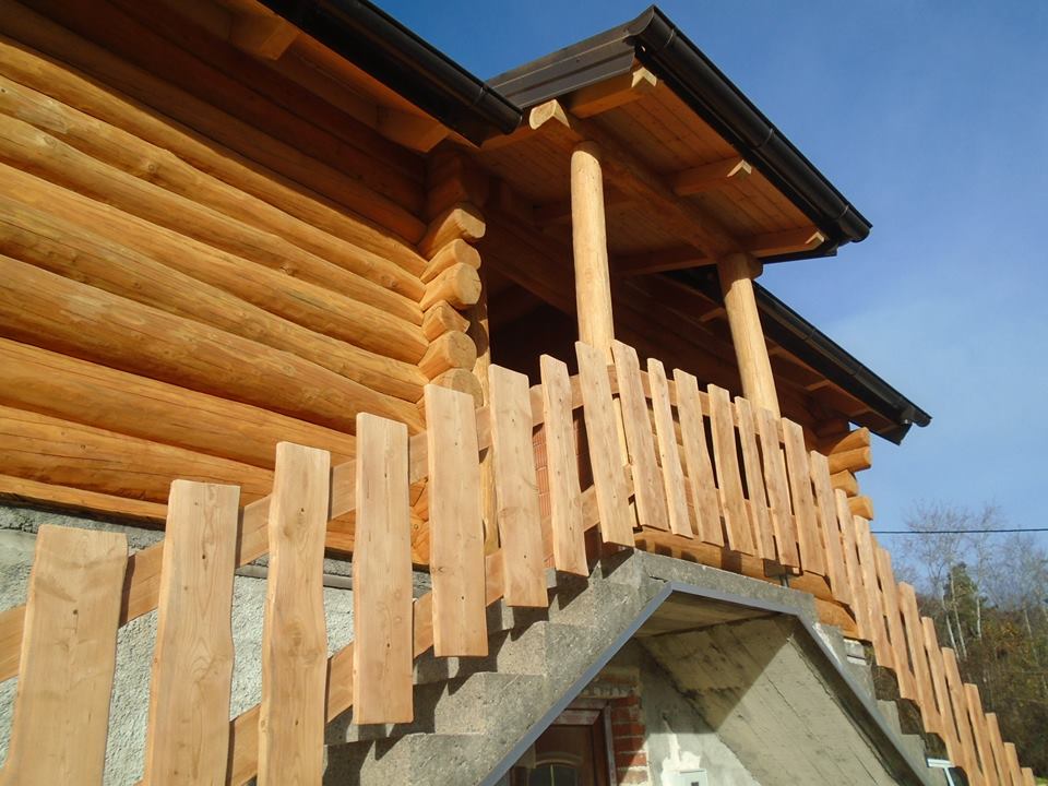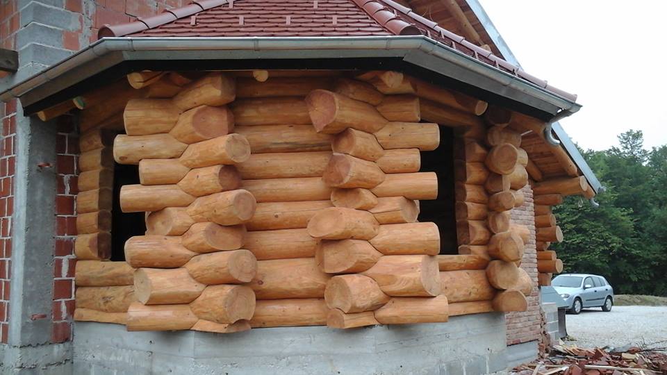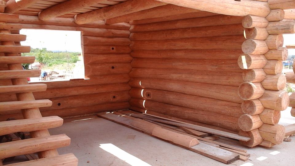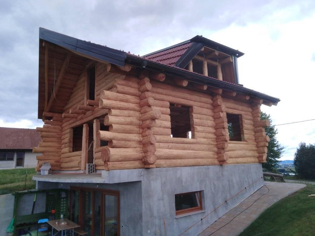 Gradnja obiteljske kuće od ručno obrađenih trupaca ariša na području Kneginca Gornjeg.