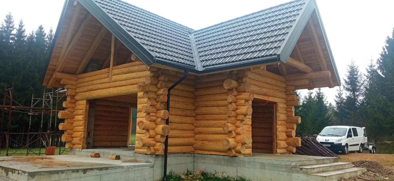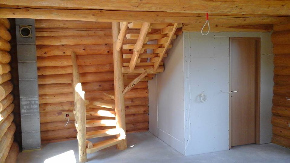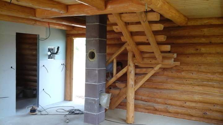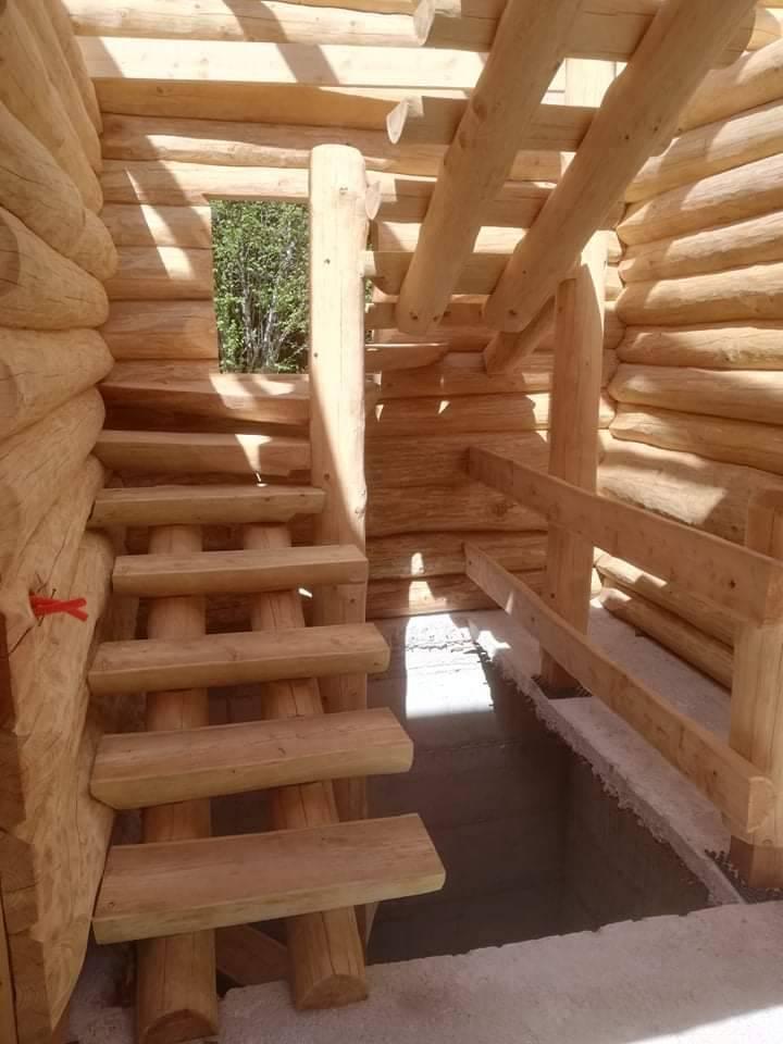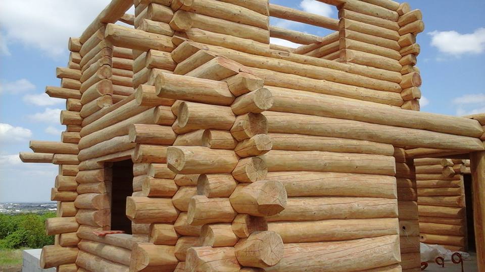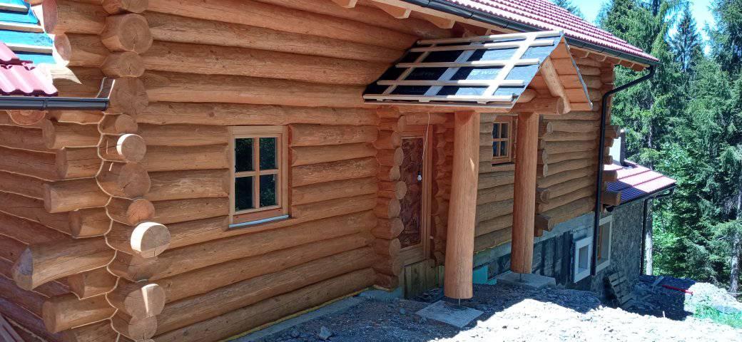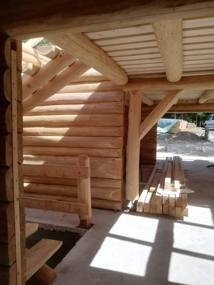 Gradnja obiteljske kuće od ručno obrađenih trupaca ariša na području Kneginca Gornjeg.