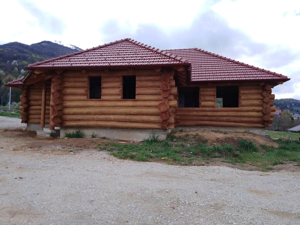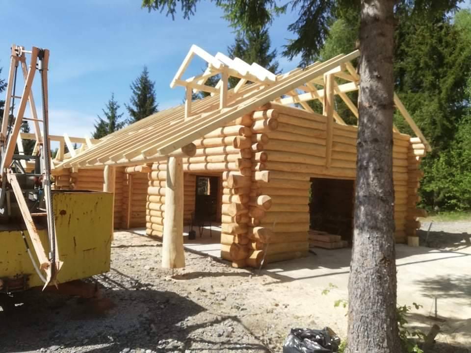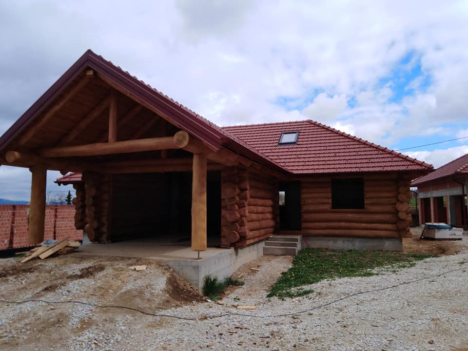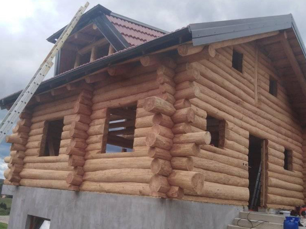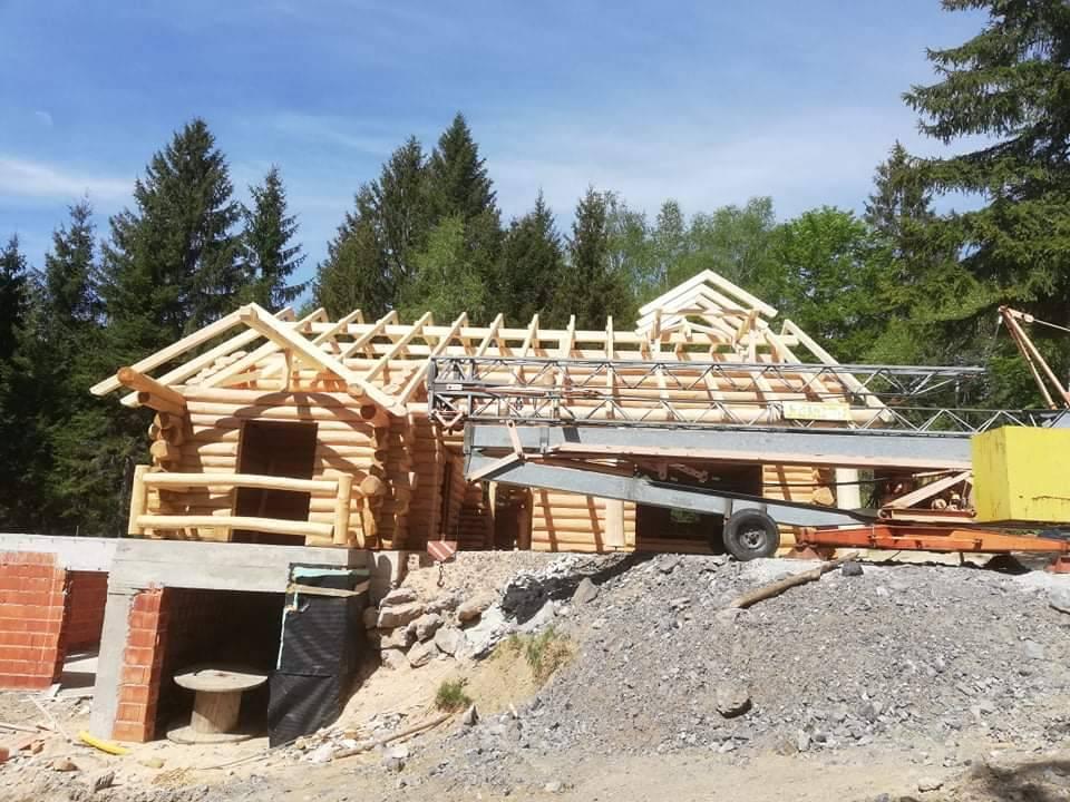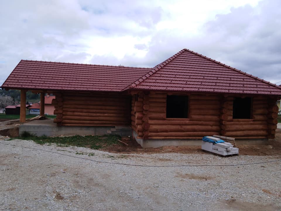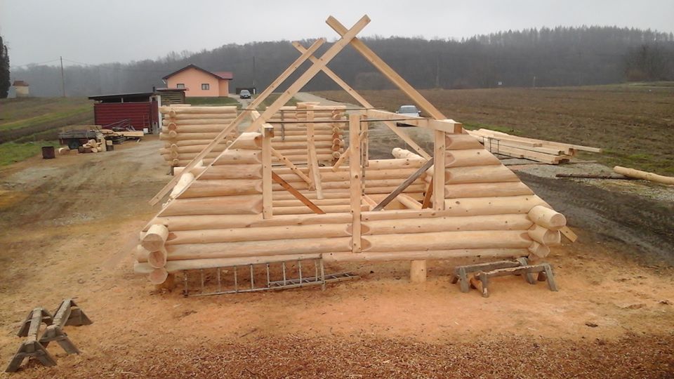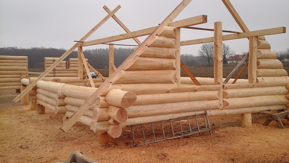 Završena montaža drvene kuće od trupaca i izgrađeno krovište. Radovi su izvođeni u Knegincu Gornjem.