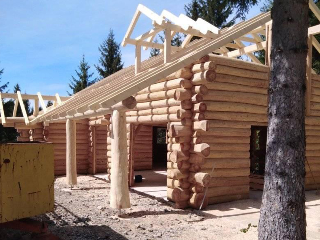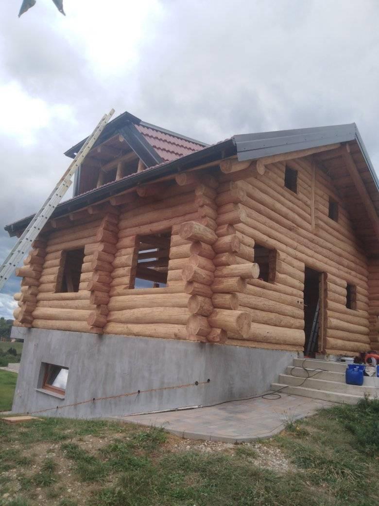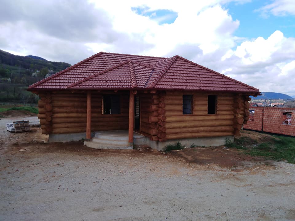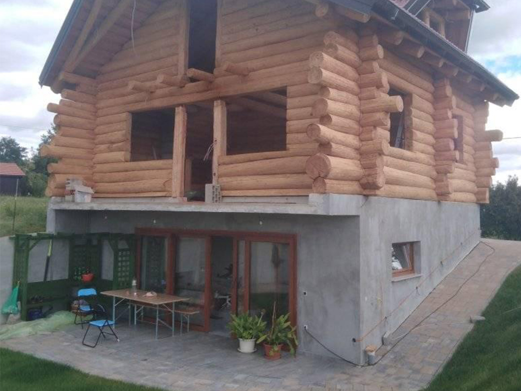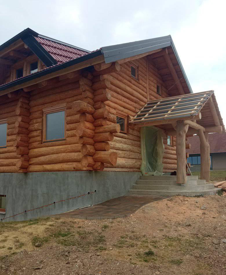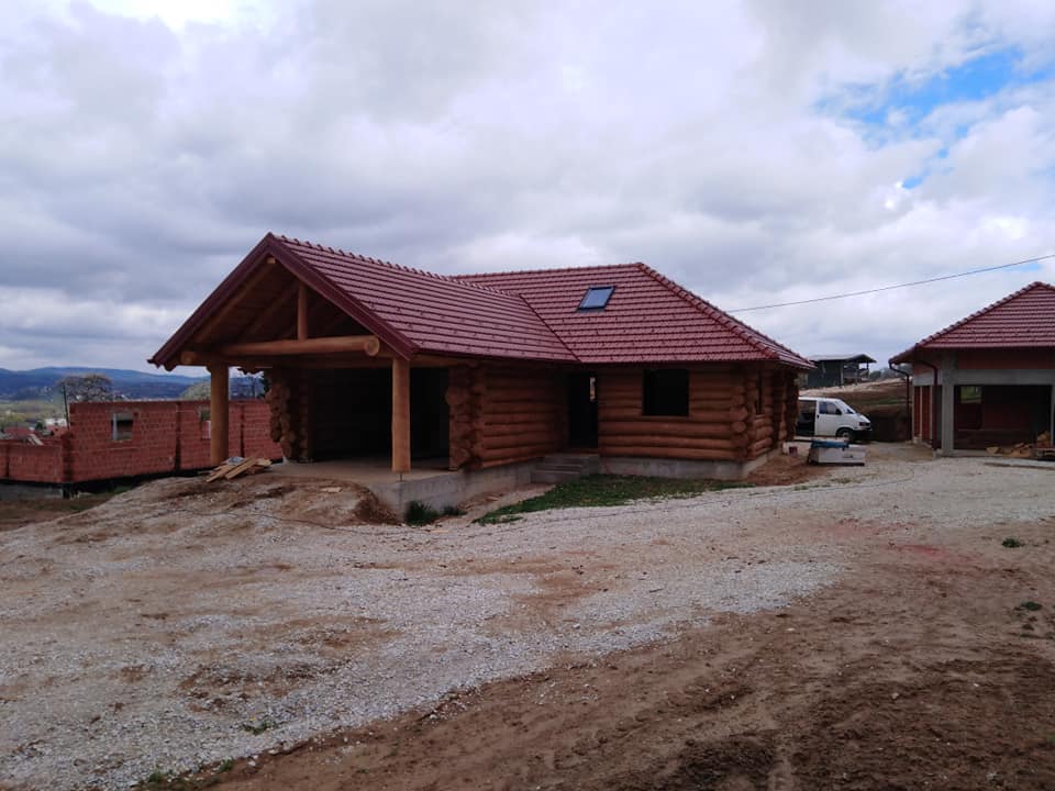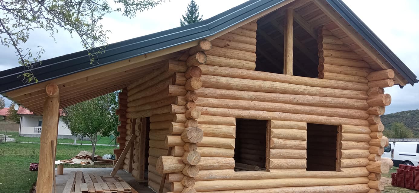 Završena montaža drvene kuće od trupaca i izgrađeno krovište. Radovi su izvođeni u Knegincu Gornjem.