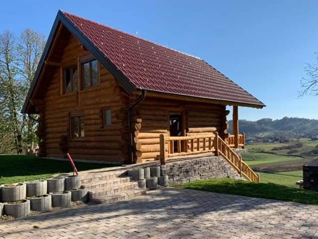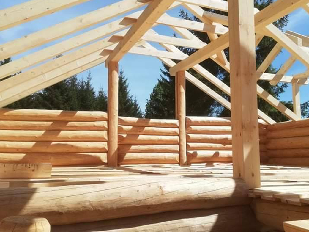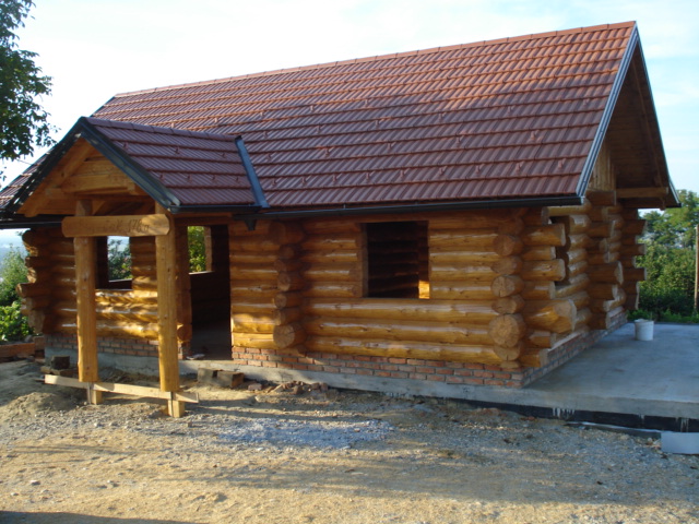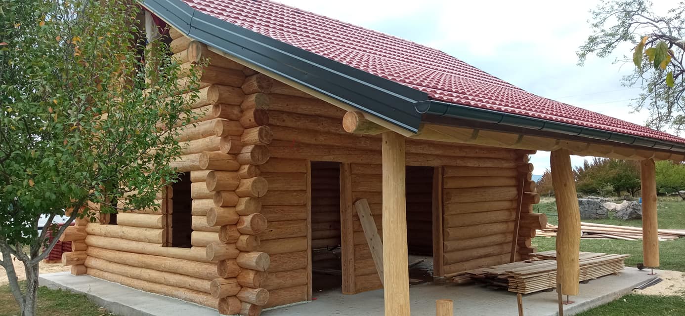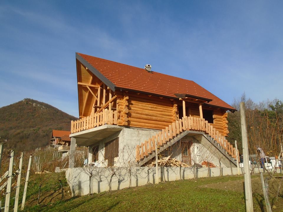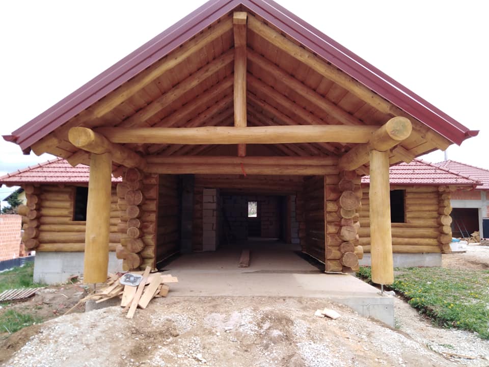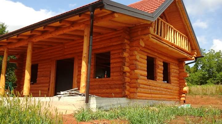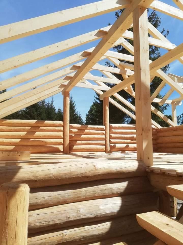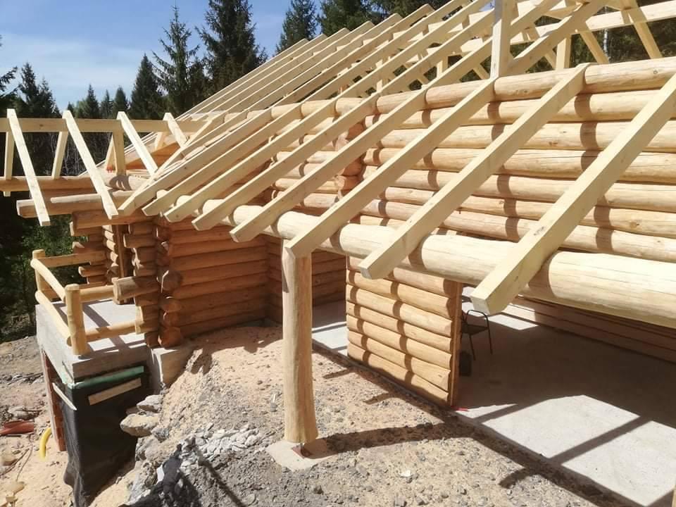 Završena montaža drvene kuće od trupaca i izgrađeno krovište. Radovi su izvođeni u Knegincu Gornjem.