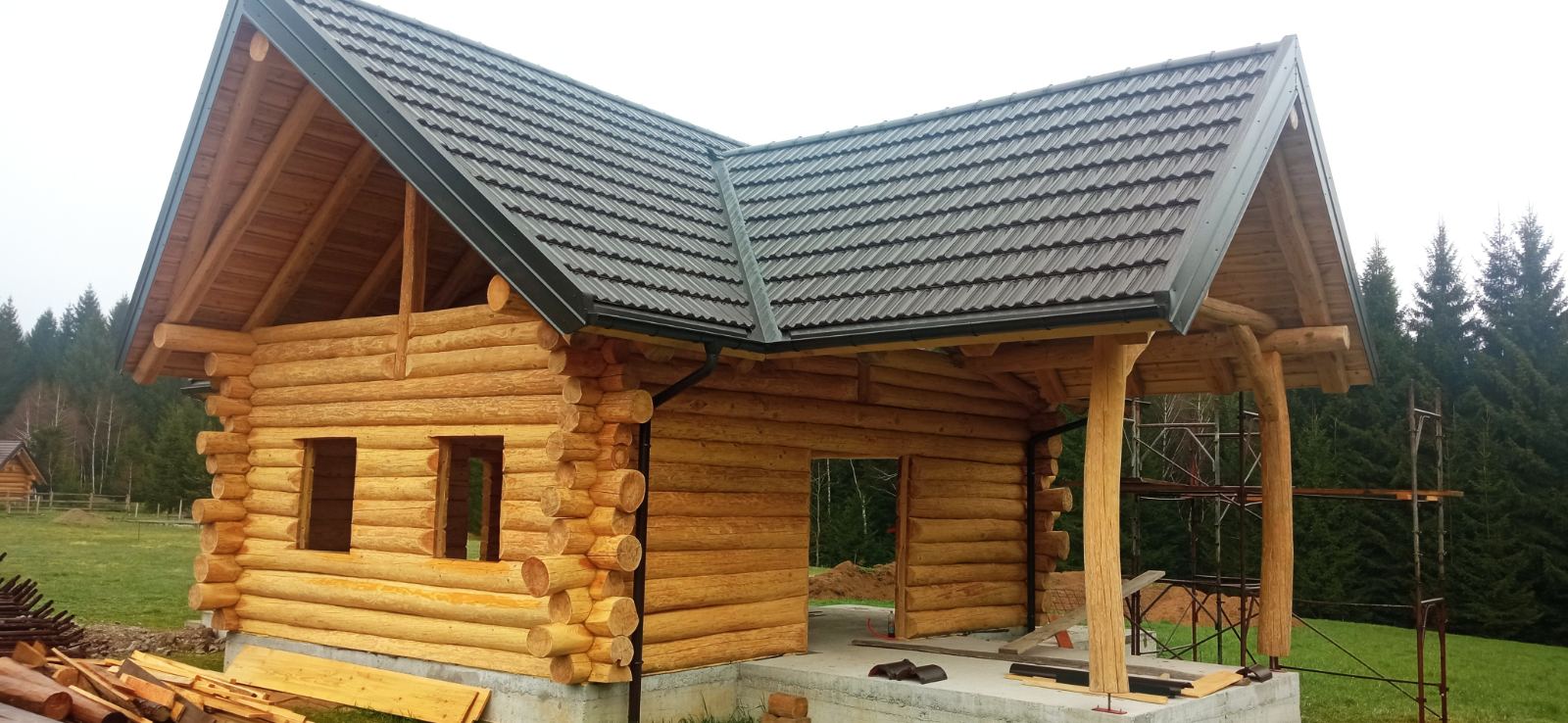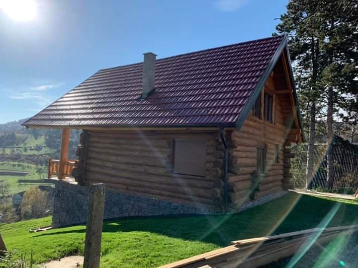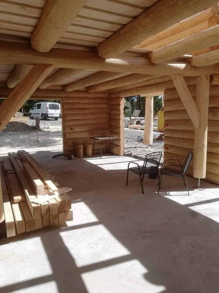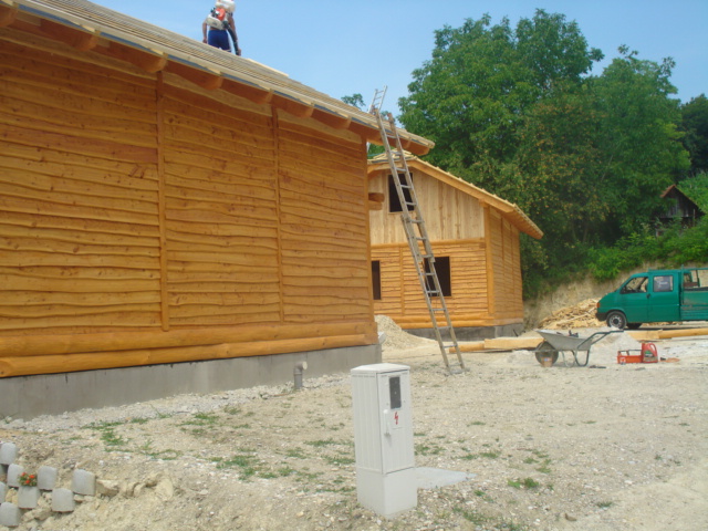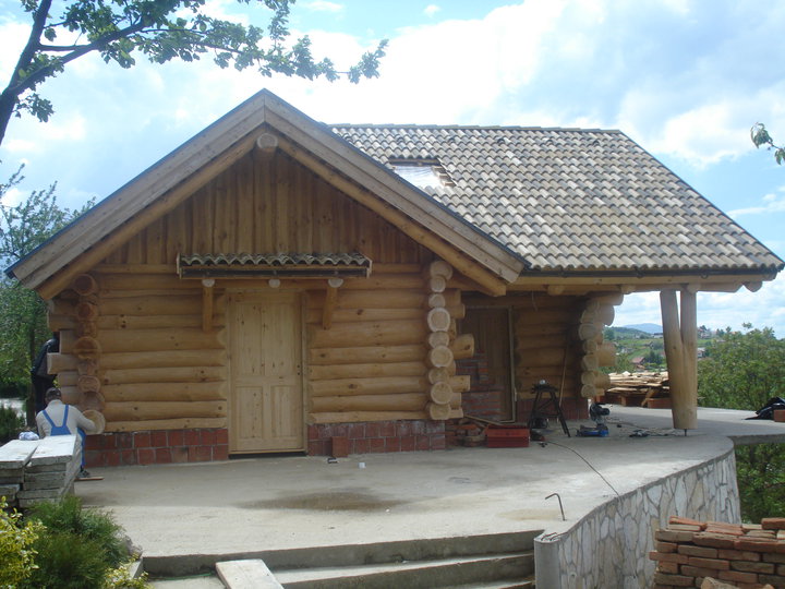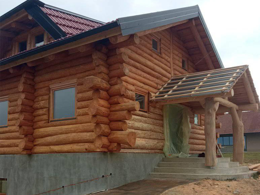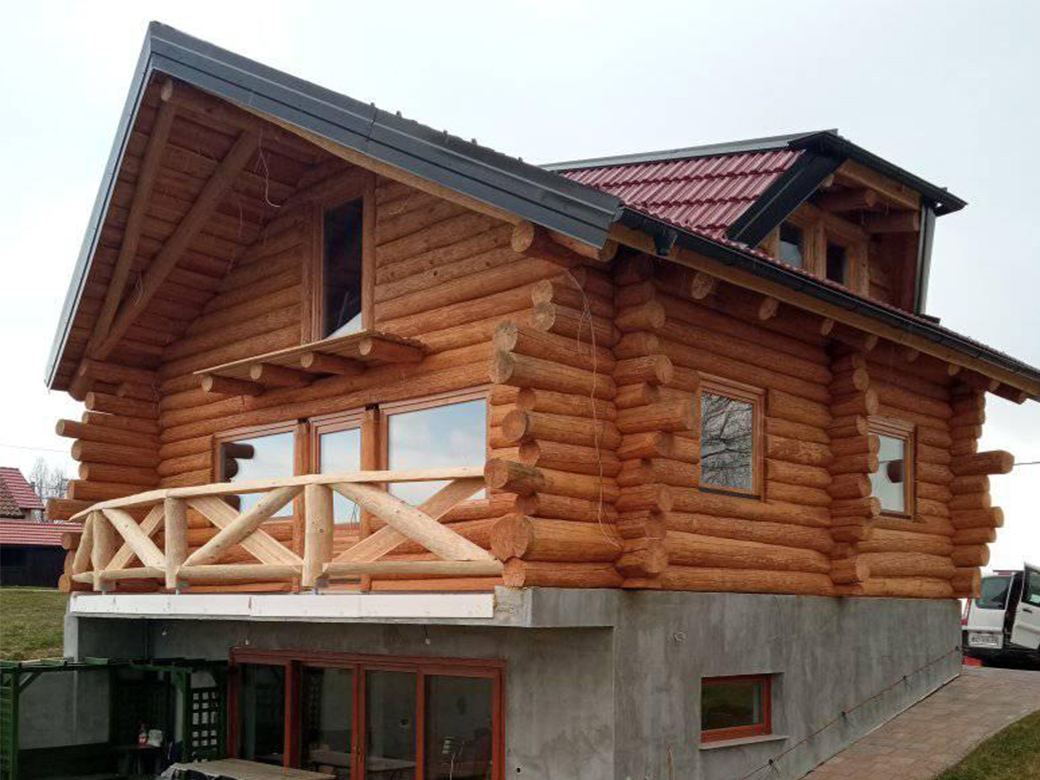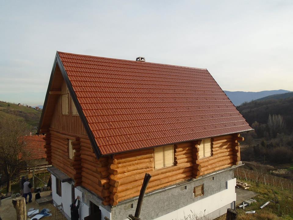 Završena montaža drvene kuće od trupaca i izgrađeno krovište. Radovi su izvođeni u Knegincu Gornjem.