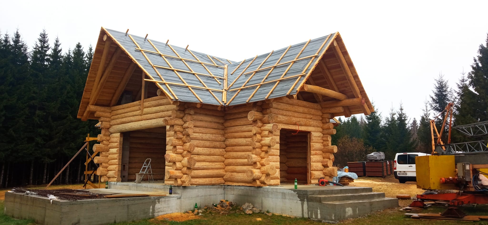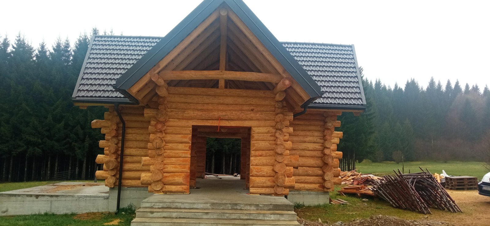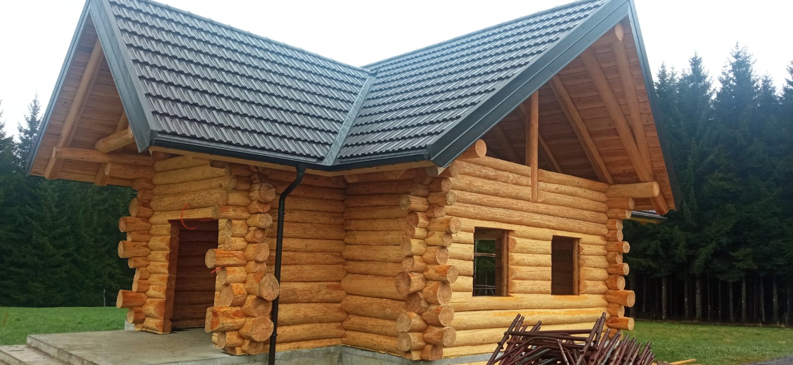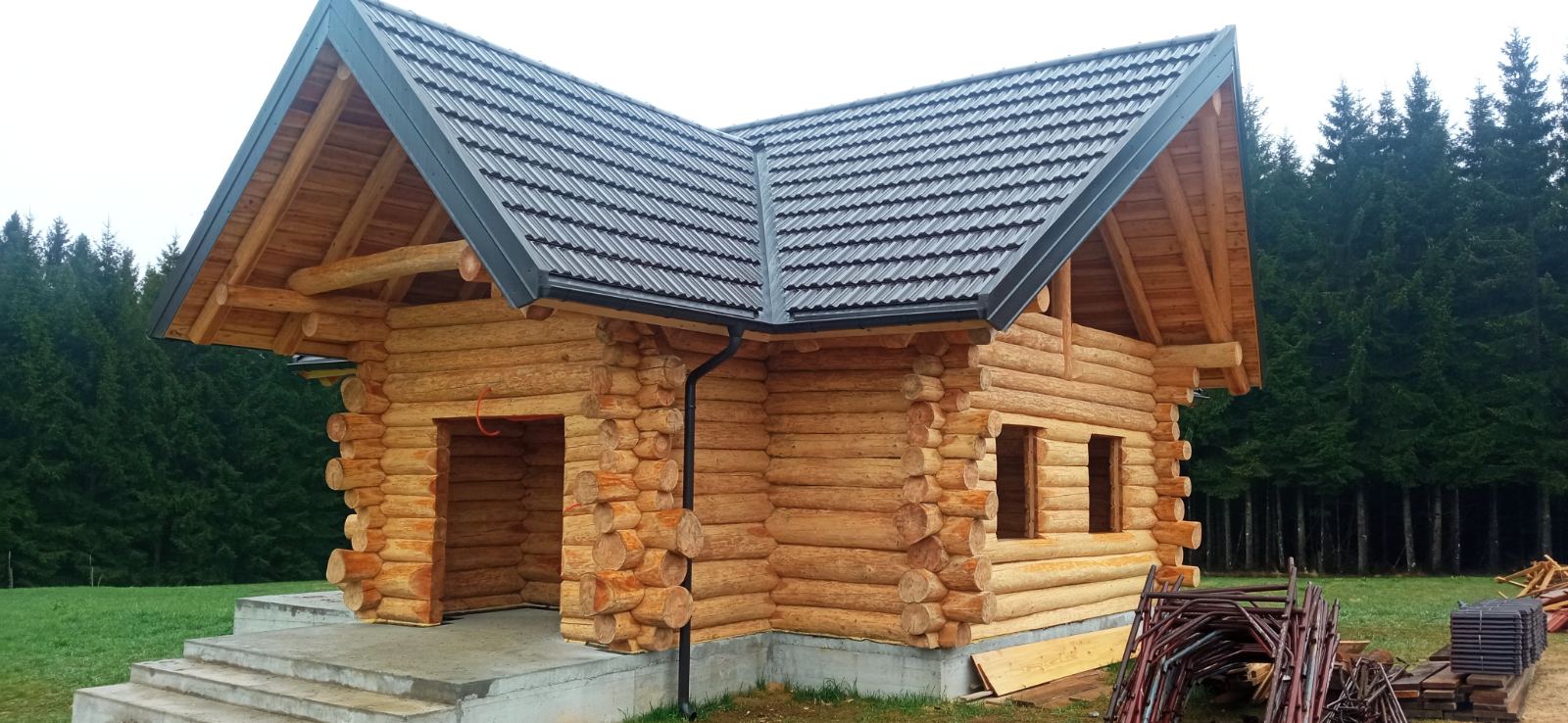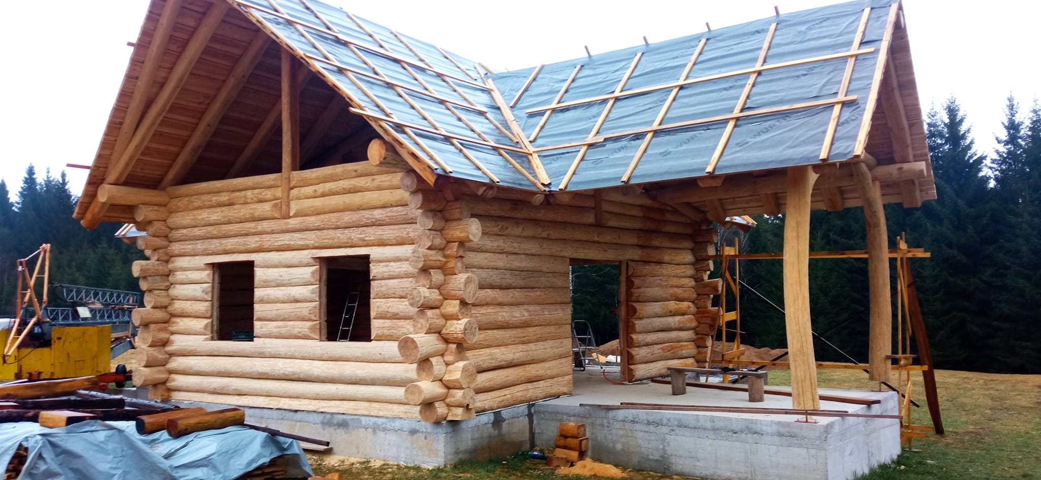 Završena montaža drvene kuće od trupaca i izgrađeno krovište. Radovi su izvođeni u Knegincu Gornjem.