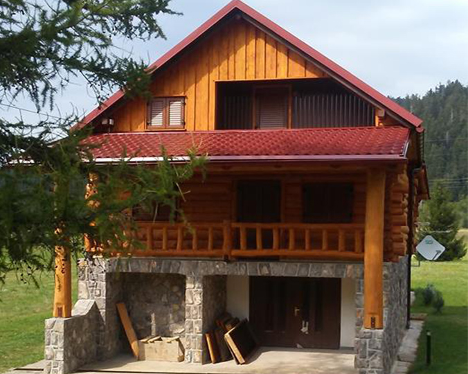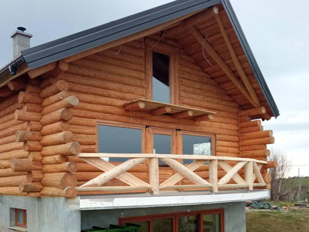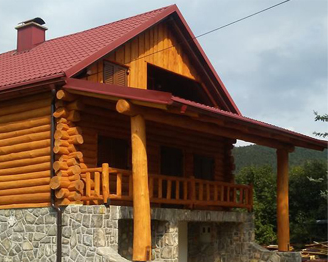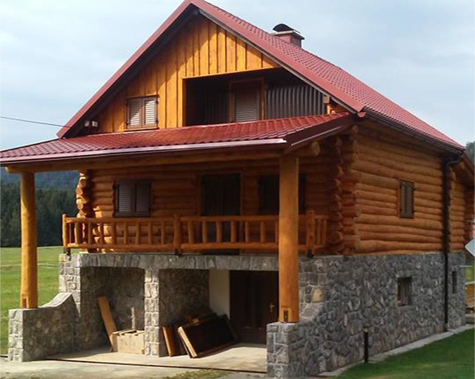 Mogućnost gradnje drvenih kuća sa izvedbom od sendvič zidova u rustikalnom tonu.