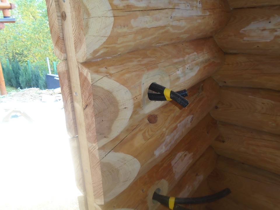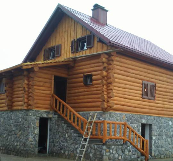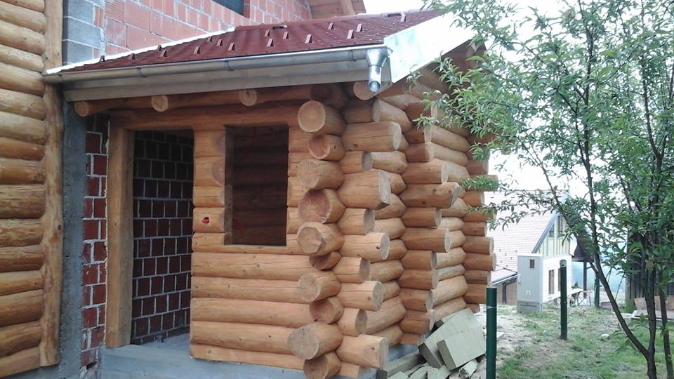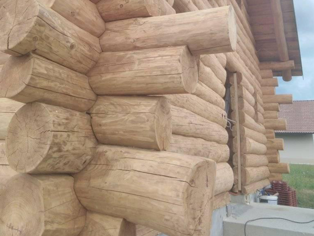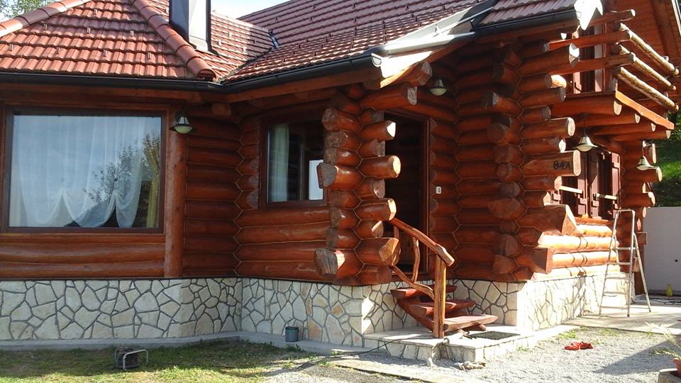 Drvena kuća kod Mađareva. Ovim putem prikazujemo mogučnost fugiranja drveta trajo elastičnim kitom. Svim vlasnicima preporučujemo da izvedu ovakve radove na svom objektu.